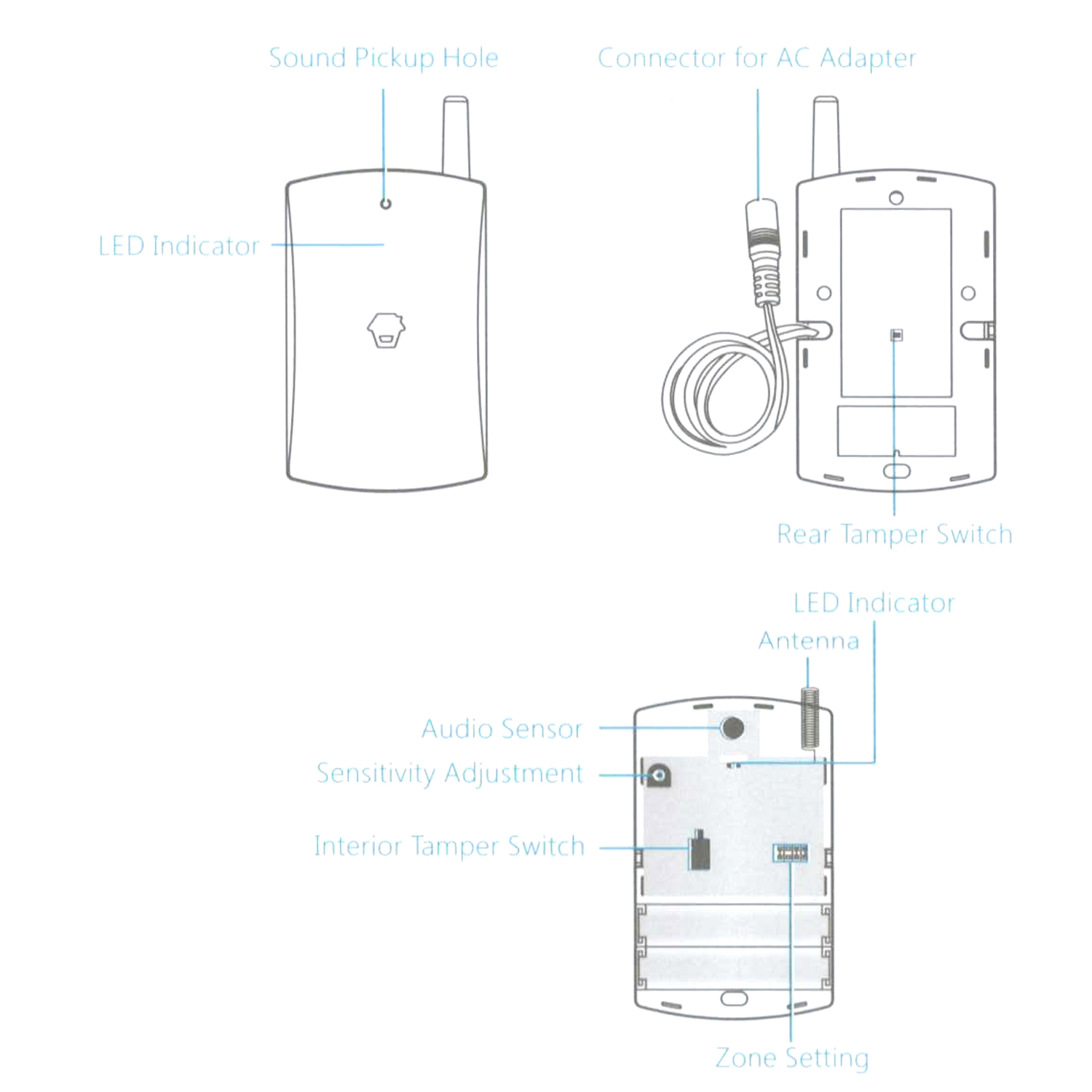 Es funktioniert mit einem Zwei-Wege-Erkennungssystem. Es führt eine Analyse der Audiofrequenz durch, um das charakteristische Geräusch zu erkennen, das erzeugt wird, wenn ein Glas zerbricht. Und gleichzeitig eine Niederfrequenzanalyse durchführen, um zu erkennen, wann in geschützten Bereichen Druck auf Glas ausgeübt wird. Aufgrund dieser dualen Analyse ist es praktisch ein Glasbruchmelder, der frei von Fehlalarmen ist.