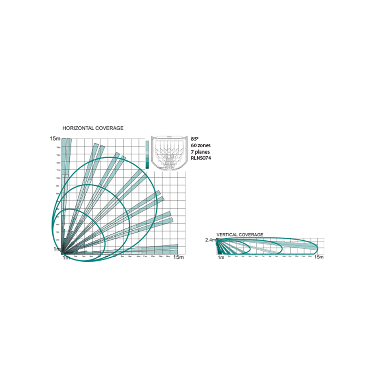 | Erfassungsbereich | 15 m / 85º für Installationshöhe = 2,4 m |