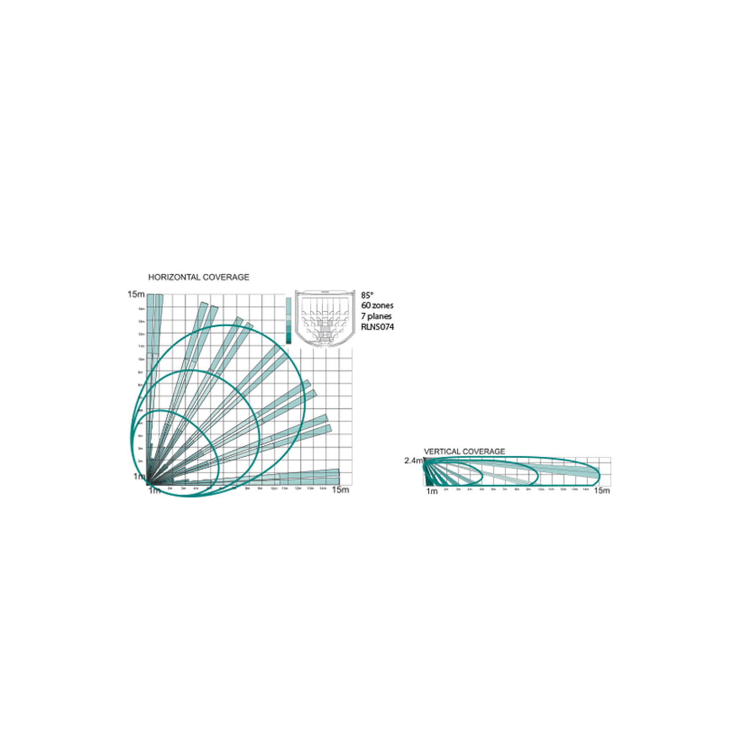 | Erfassungsbereich | 15 m / 85º für Installationshöhe = 2,4 m |
