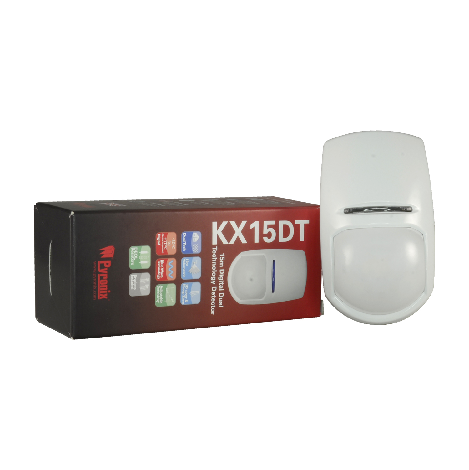 Pyronix volumetrischer Hochsicherheits-PIR-Detektor. Kabelgebunden, doppelte Technologie, geeignet für den Innenbereich.