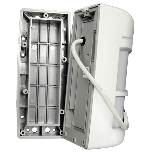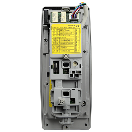 | Kabelgebundene Ausgänge | Alarm (NC/NO), Power, Antimasking (NC/NO) und Sabotage (NC/NO) |