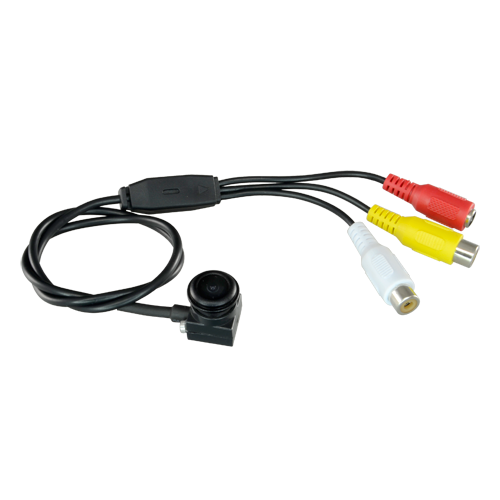 Unglaubliche Größe für eine hochwertige Kamera, die aus drei Teilen besteht: Erstens das Objektiv mit geradem Kopf und geringen Abmessungen von nur 14 x 14 x 20 mm; zweitens die Elektronik, getrennt durch ein flexibles Kabel von 500 mm; und schließlich die Audio-, Video- und Stromanschlüsse.