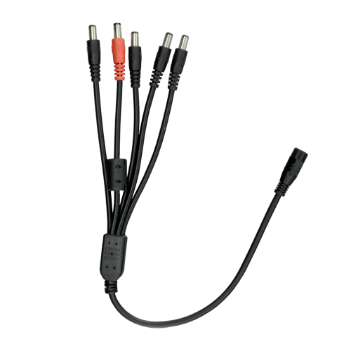 Es hat einen männlichen Standard-Netzteileingang und 5 weibliche Standard-Netzteilausgänge. Es kann hiermit bis zu 5 Kameras (oder andere Geräte), die an seinen Ausgang angeschlossen sind, mit Strom versorgen, indem es ein einziges Netzteil verwendet, das an seinen Eingang angeschlossen ist.