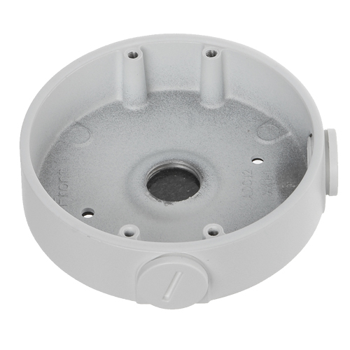 Erlaubt es, das Netzteil, die Kabel und das Installationszubehör darin zu verstauen. Es verfügt über mehrere Löcher für die Installation verschiedener Arten von Bullet- oder Dome-Kameras. Befestigung an Wand oder Decke durch 4 mitgelieferte Schrauben. Die Kamera ist in der abnehmbaren Abdeckung der Halterung installiert. Es ermöglicht eine interne Verkabelung.