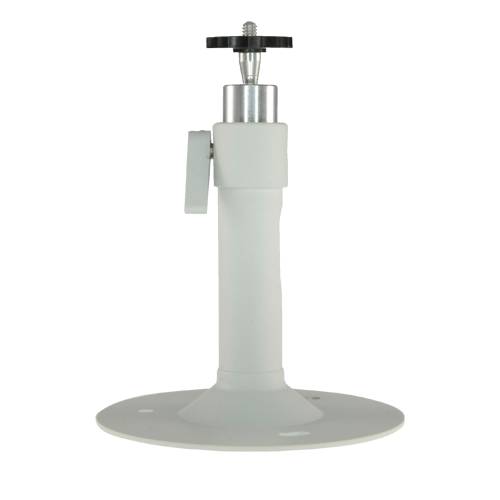 Halterung für Wand oder Decke, bewegliches Kugelgelenk, das völlige Freiheit bei der Ausrichtung der Kamera ermöglicht. Geeignet für Installationen im Innen- und Außenbereich. Hohlkörper und seitliches Loch zum Verbergen der Verkabelung.