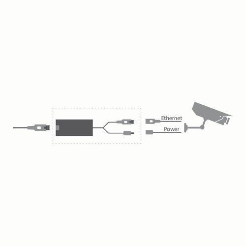 Ermöglicht die Stromversorgung und den Anschluss einer IP-Kamera an ein Ethernet-Kabel mit verfügbarem Power over Ethernet (PoE). Nützlich in Fällen, in denen eine PoE-Stromversorgung für eine IP-Kamera erforderlich ist, die nicht über diese Funktion verfügt, wodurch die Installation vereinfacht und die Kosten gesenkt werden.