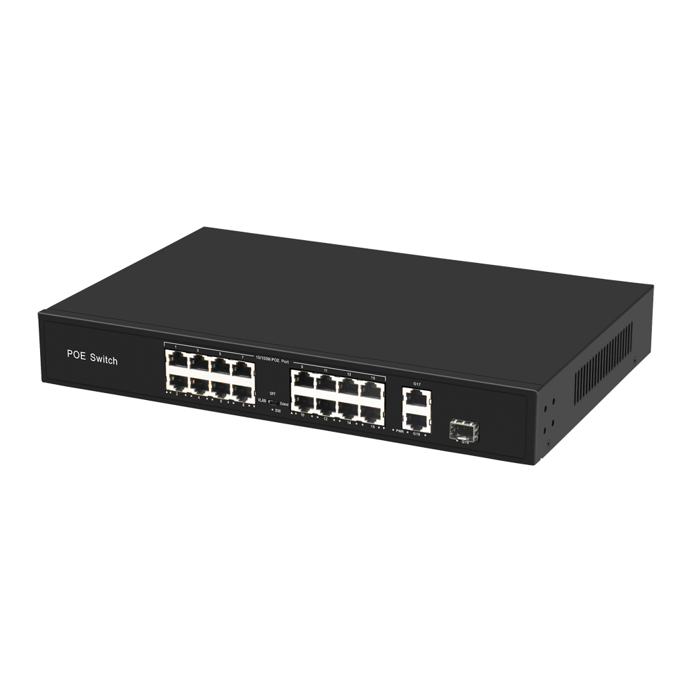 - 16 PoE-Ports + 2 Gigabit + 1 SFP