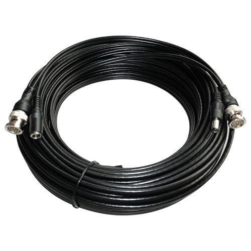 SAFIRE Koaxial-Verlängerungskabel für Video und Strom. Kombiniertes Kabel RG59 + DC. Geringer Verlust. Feste Länge von 30 Metern, mit männlichem BNC-Videoanschluss an den Enden.