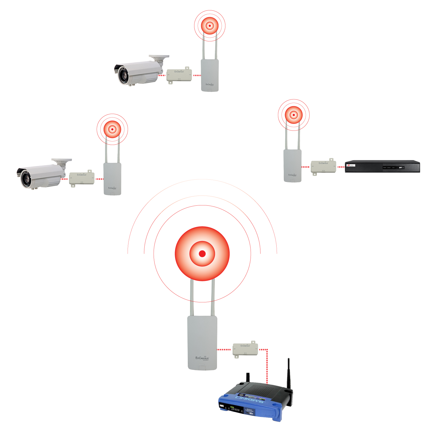Der ENS202EXT ist die ideale Lösung für die drahtlose Verbindung von IP-Kameras und Rekordern, die im 2,4-GHz-Band arbeiten. Seine duale omnidirektionale externe Antenne von 5 dBi, die Technologie MIMO (2 Sender/2 Rezeptoren) und die maximale Leistungsübertragung von 26 dBm (konfigurierbar) ermöglichen es Ihnen, Kameras über mehrere Kilometer zu verbinden (die maximale Entfernung hängt von der jeweiligen Umgebung ab). Die Antenne mit einem Gewinn von 5 dBi verfügt über ein omnidirektionales Strahlungsdiagramm, das den Anschluss von Geräten in einer Umgebung von 360 ° ermöglicht.