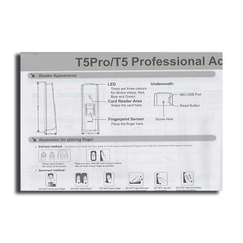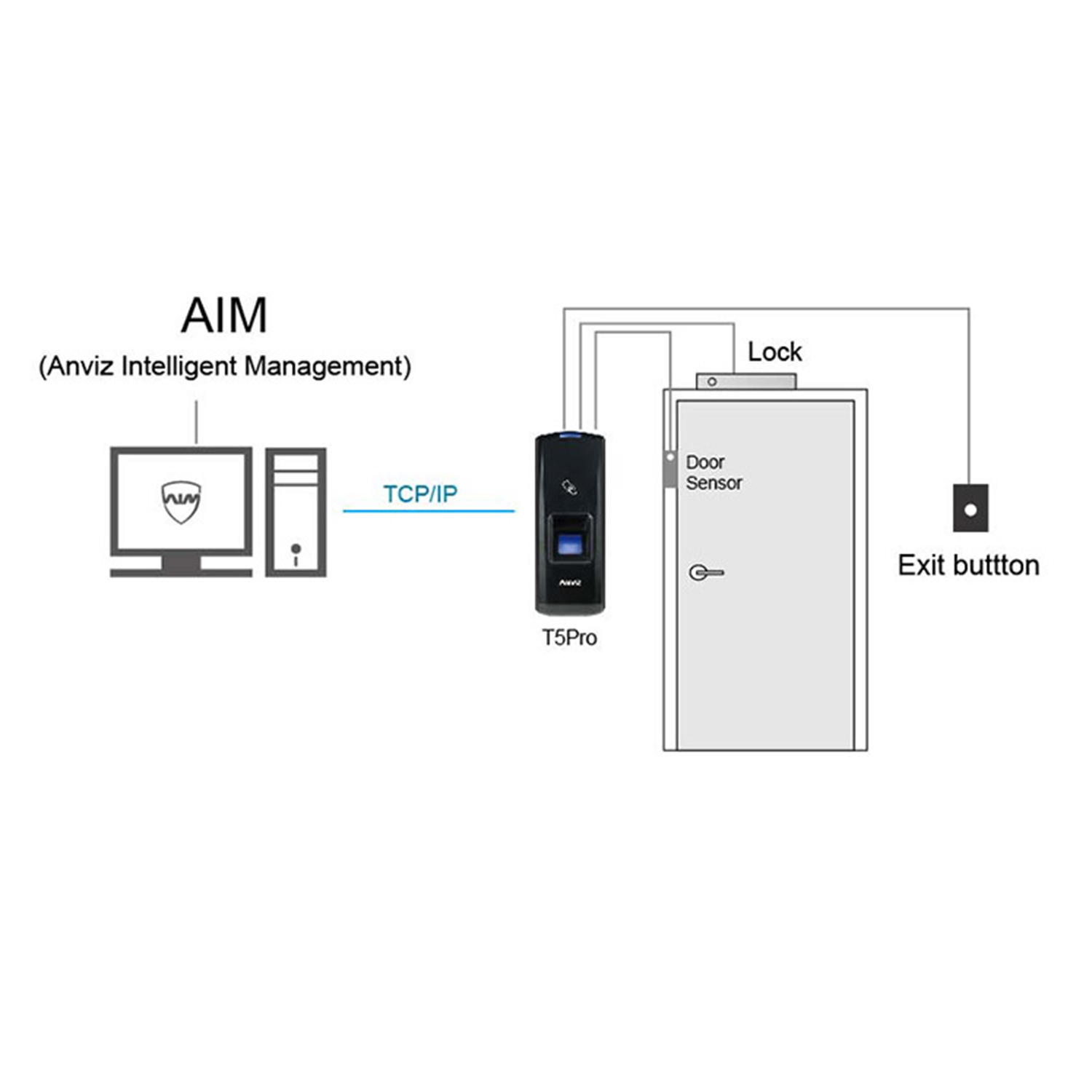 PC-Kommunikation über TCP/IP, RS485 und miniUSB Plug & Port spielen. Wiegand 26-codierte Ausgabe. Im Gegensatz zum T5 verfügt der T5PRO über einen eigenen Zugangscontroller und verfügt über einen Türsensor, einen Anschluss für einen Türdrücker und ein Relais zur direkten Steuerung elektronischer Schließmechanismen. Der Relaisausgang kann einen Ausgang mit 12V DC Spannung oder einen spannungsfreien Schließer/Öffner Kontaktausgang bereitstellen, wobei die gewünschte Option über einen internen Jumper ausgewählt wird.